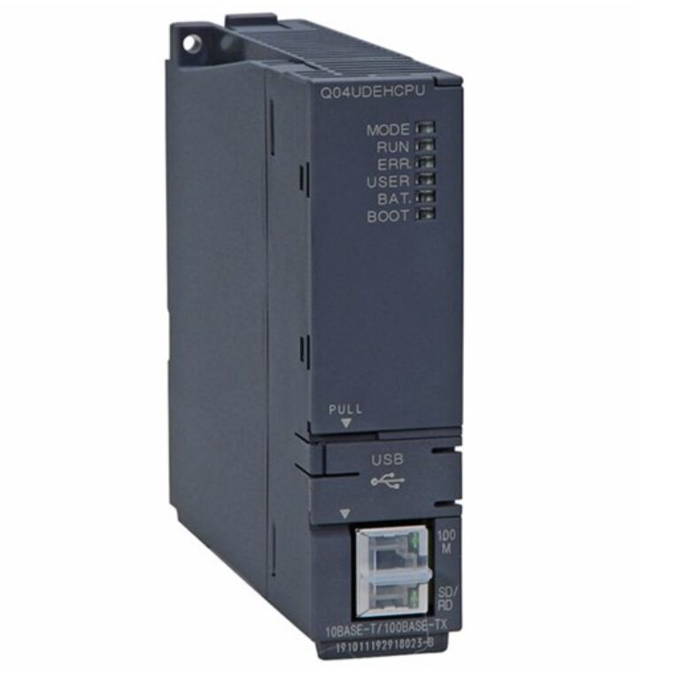 Der Q04UDEHCPU ist ein leistungsstarkes universelles CPU-Modul der MELSEC-Q-Serie von Mitsubishi Electric. Er bietet eine schnelle Sequenzverarbeitung mit einer Basisbefehlsgeschwindigkeit von 9,5 ns, unterstützt bis zu 4096 lokale E/A-Punkte und 8192 Gerätepunkte und ist mit integrierten USB- und Ethernet-Schnittstellen für einfache Programmierung, Überwachung und Netzwerkverbindungen ausgestattet. Das Modul unterstützt die Hochgeschwindigkeitskommunikation zwischen mehreren CPUs und die Erweiterung mit Speicherkarten, was es für industrielle Automatisierungsanwendungen im mittleren Bereich geeignet macht, die eine zuverlässige Logiksteuerung, schnelle Reaktion und stabile Vernetzung erfordern. Es entspricht globalen Sicherheits- und EMV-Standards und ist für den Einsatz in der Fabrikautomatisierung, Maschinensteuerung und Systemintegration konzipiert.